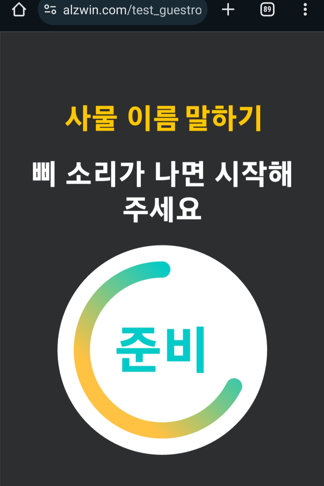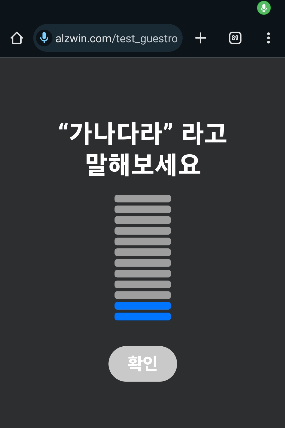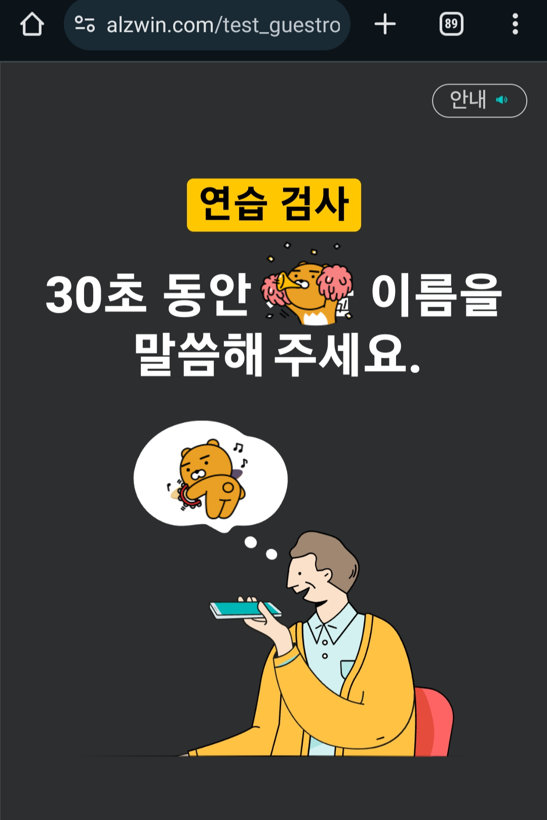 간단한 연습 검사를 진행 후 본 검사를 진행합니다. 통화하듯이 핸드폰에 대고 큰소리로 말씀하시면 되세요